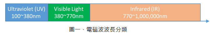 在地球上充滿了各種波長的電磁波,所謂的可見(色)光就是人眼可見的電磁波譜,其波長為 380~770nm,為了避免遙控器發射的光造成人眼不適,故選用人眼不可見的紅外線(Infrared)波長,目前業界遙控器發射頭幾乎都選用 940nm 波長。