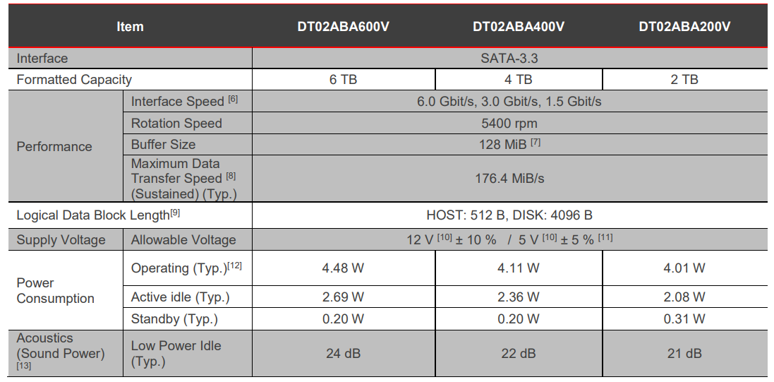 為了滿足與支持安防監控發展的應用,東芝硬碟 DT02-V 系列是專為這樣條件特別打造的,適用對象包含消費型與商用型監控視訊系統範圍,DT02-V 系列採用 5400 rpm的轉速設計,並可以充分滿足全天候 24x7 運行之要求,同時也搭載了128MB 快取緩衝區,以及先進格式 512e 磁區技術,最多可支援 32 台攝影機之讀寫。