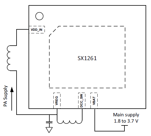 根據設計SX1262可依應用程序的優先考欲來使用兩種形式的電壓調節(DC-DC 降壓轉換器或線性 LDO 穩壓器)