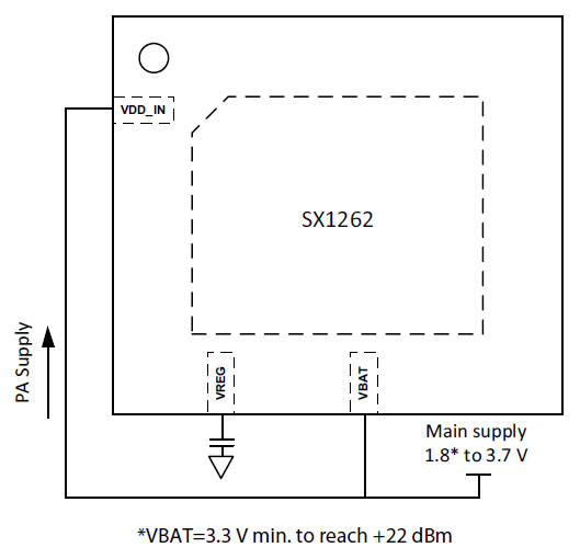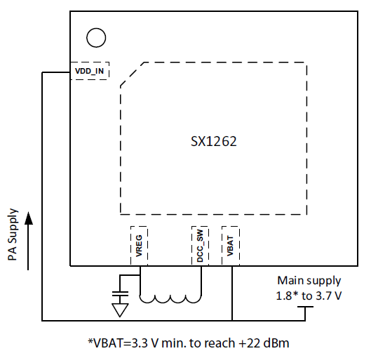 由於SX1262可以提供高達22dB的輸出功率,所以PA必達到3.3V以上(如下圖)。。