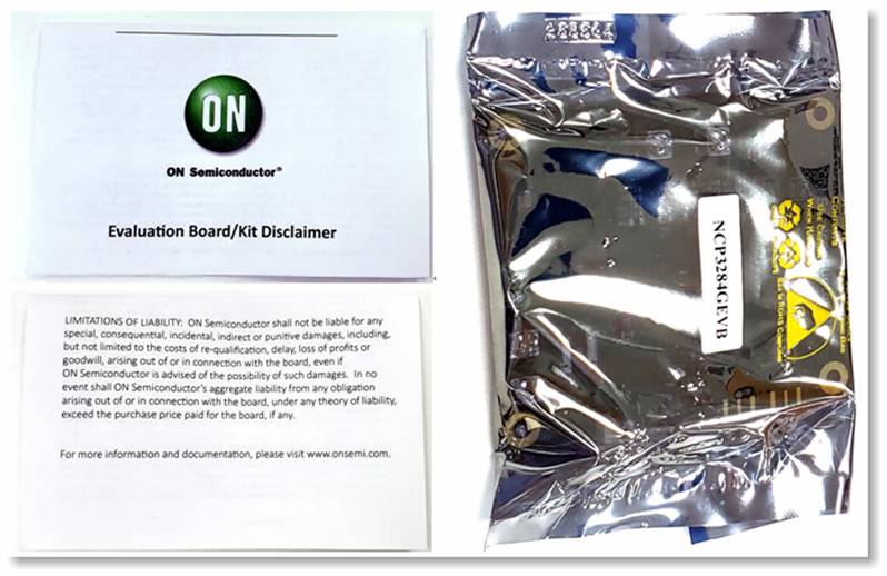首先,左上是聲明書正面和左下是翻拍的聲明書背面,右側則為整套的 NCP3284GEVB Evaluation Board。