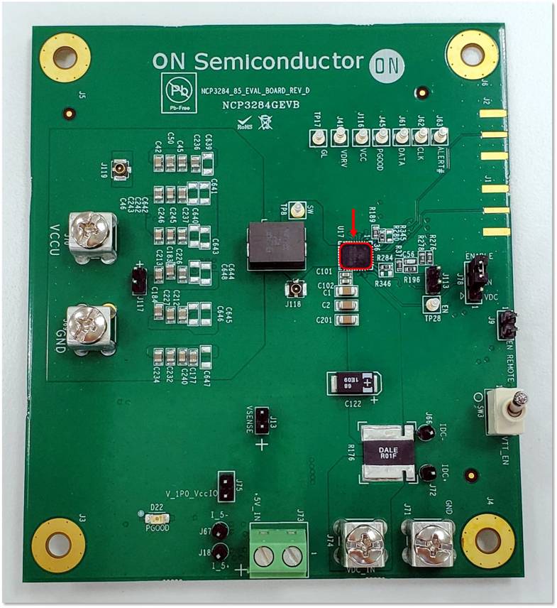 同時,在我們拿開保護袋後,大氣映入眼簾,即刻感受到整體 PCB 板上的零件擺放配置得俐落整齊,以及 Layout 佈局上的排列是非常得漂亮有邏輯,能先來跟配置在上面的主角 NCP3284/A ( U17 ) IC 作一下設計察看。以這塊評估板面積的 PCB 尺寸大小來說,真的不至於太小片而讓 ”人” 嚐盡苦頭,畢竟人眼可不是攝像頭,加上採用了綠色漆底塗層作為基調,整體視覺上的感受,就不會讓人實驗不久後雙眼感到疲勞;對於,實際操作者在實驗上,可說是一大貼心加分、輕鬆無負擔呢~ !
