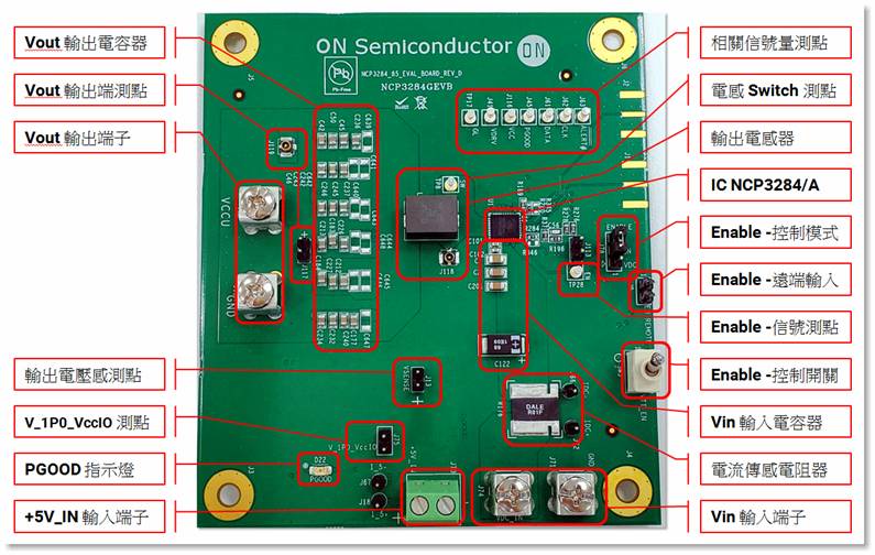 - 輸出電流:NCP3284 連續最大 30 A / 瞬間最大 45 A