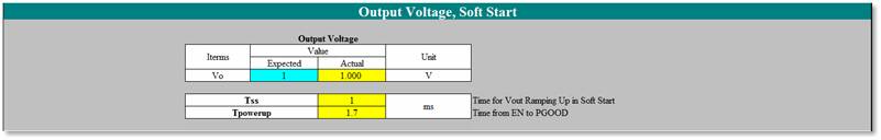 第三項「Outut Voltage, Soft Start」能夠設定關於 NCP3284/A:輸出電壓,和顯示 Tss & Tpowerup 的起動時間。