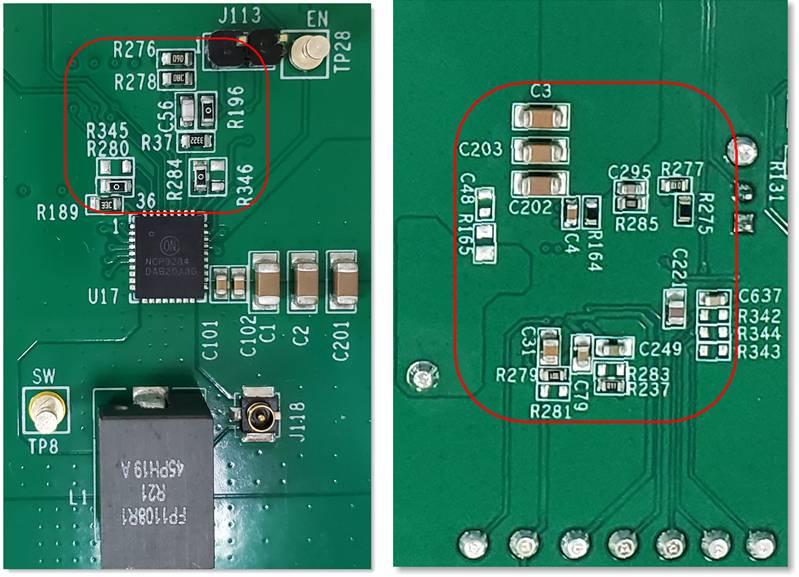 實際在評估板上的線路,廠商事先將預設成 ( 如圖1. ) 的架構模型;而 ( 如圖2. ) 線路上的零件 ( R283/R281 ) 則為 DNP 預留無上件。