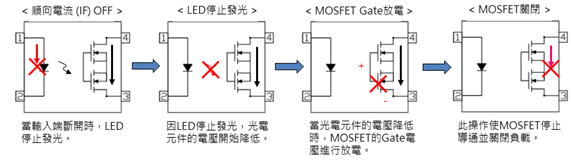 圖1是 SSR 內部架構,Driver circuit 用來提供 MOSFET Gate 所需的電壓,Driver circuit 則 由 Photodiode array 提供電源,IR LED 則需達到一定的光強度,才能產生足夠的電壓給 Driver circuit,進而使 MOSFET 導通,由於每顆 IR LED 有強度上的差異,因此建議IF設計在規格書的 max.值以上,以 EL4XXA 系列來說,IF應設計在 5mA 以上。