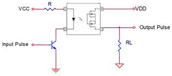考量到 IR LED 會隨著使用時間增加而逐漸光衰,因此輸入端的工作電流(IF),建議設計在 IF(on) ∗ (1.25~1.5),以避免IF降低後造成失效。如圖2所示,假設 IR LED 的 VF=1.2V,得IF =(5−1.2−0.4)/510=6.67mA