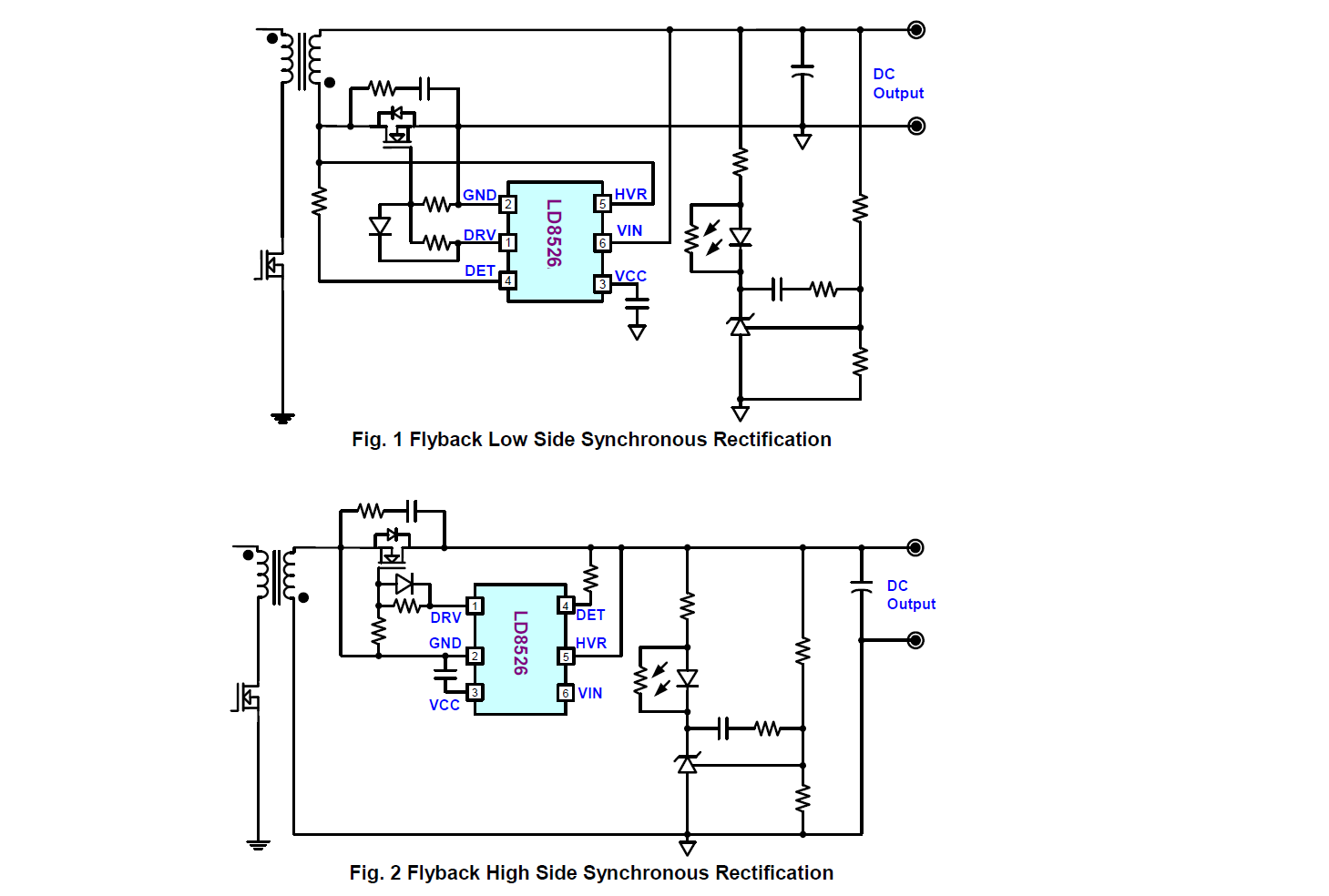 應用於切換式AC/DC適配器和電池充電器與開放式框架開關電源的LD8526GL是一款二次側同步整流 (SR) 驅動器 IC。它適用於CCM、DCM和QR模式下的反激式電路架構,可使用在低側負端輸出和高側正端輸出位置的同步整流,LD8526GL可用於CCM和DCM操作在輕負載條件下,LD8526GL可以進入節能模式,透過停止 SR MOSFET 驅動功能來降低工作電流。可以透過低輸出電壓在負端輸出或正端輸出位置的整流應用產生自己的電源電壓維持運作不需要另外提供電源給IC運行,可以自行供電,無需輔助繞組,可以減少許多系統電路周邊零件與控制電路組件數量與電路空間,並降低電源應用的材料成本。可支援具有峰值負載功能的應用(最高頻率可到130kHz),適用於PD應用輸出電壓範圍為3V至21V,可編程設定IC關斷的準位。