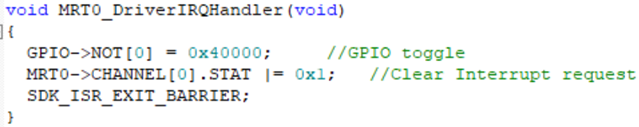 3. 中斷設置,先清除中斷狀態值,再由 NVIC 開啟 MRT 中斷功能