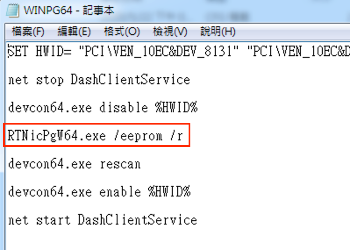 3. 請將第四行指令改為RTNicPgW64(32).exe /efuse, 並save