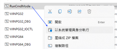 4. 以系統管理員身分執行 WINPG64(32).BAT, 即可燒錄