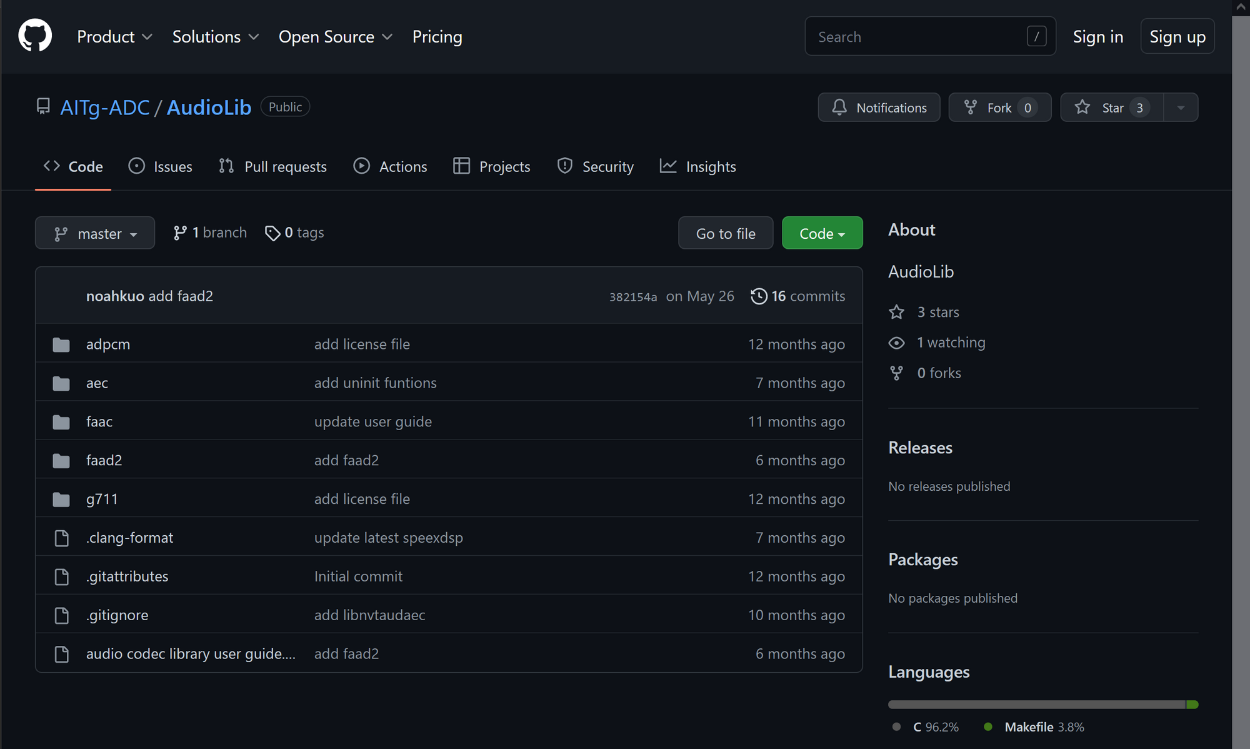 按照說明文件”Audio codec library user guide.pdf”的說明,將特定資料夾複製至Novatek SDK的對應資料夾中,再於SDK中執行make指令,便可以編譯函式庫,並自動於編譯完成後將函式庫複製至SDK的輸出資料夾中,方便專案的整合。