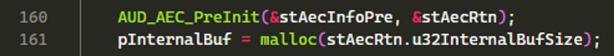 執行AUD_AEC_PreInit(),API會計算函式庫所需的記憶體大小並配置