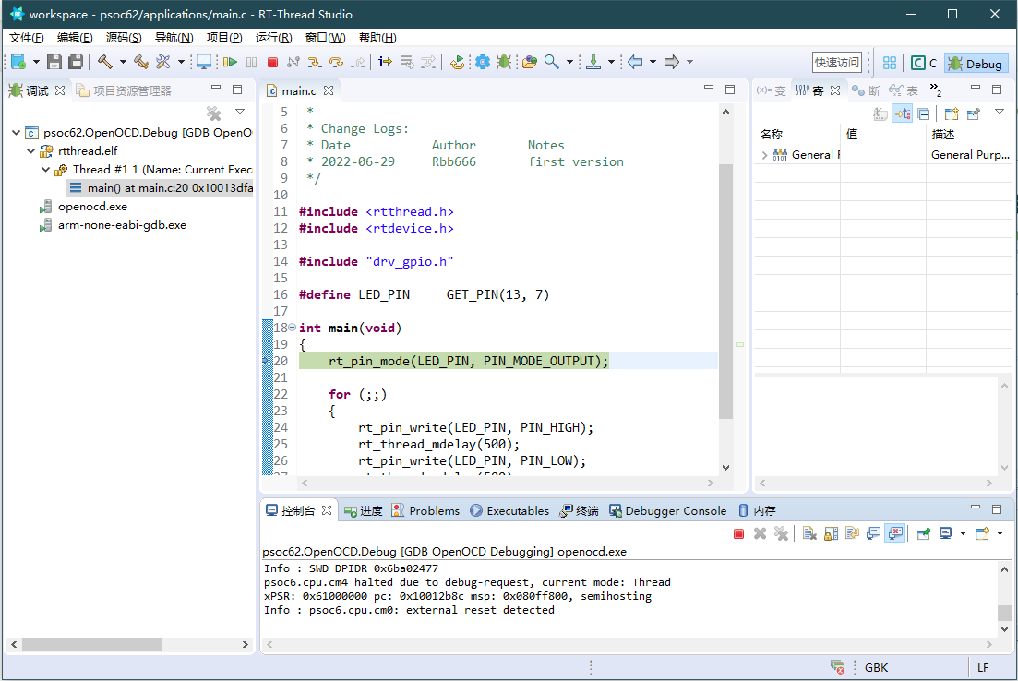 RT-Thread Studio 支持英飛凌PSoC,具備PSoC 6開發,調試,燒錄功能。
