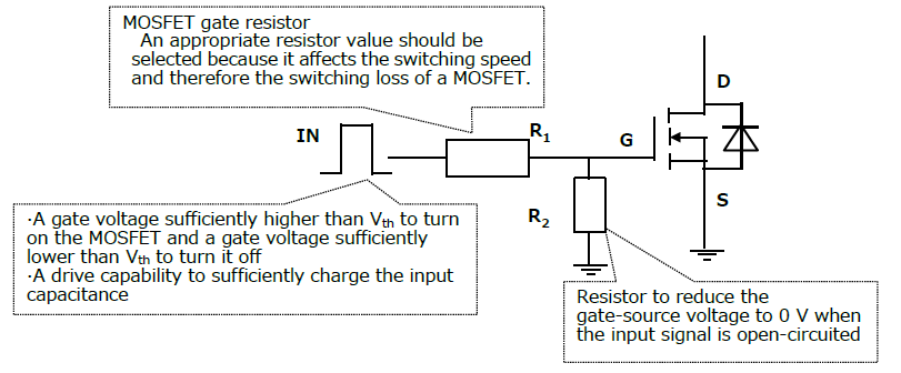 圖一:『Basic MOSFET drive circuit』(註1) 出處 TOSHIBA MOSFET Gate Drive Circuit Application Note.