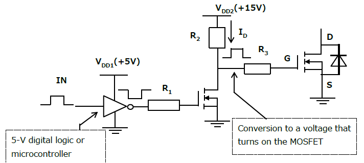 圖三:『Drive voltage conversion』(註1) 出處 TOSHIBA MOSFET Gate Drive Circuit Application Note.