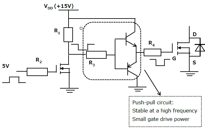 圖四:『Push-pull circuit』(註1) 出處 TOSHIBA MOSFET Gate Drive Circuit Application Note.