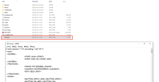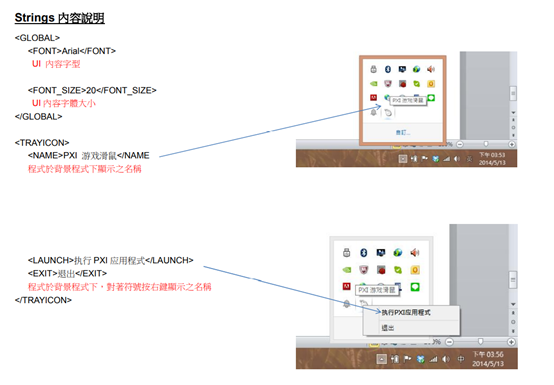 使用檔案 Strings.xml,開啟檔案內容,會有 UI 所有操作上的文字敘述,可針對所需進行修改。