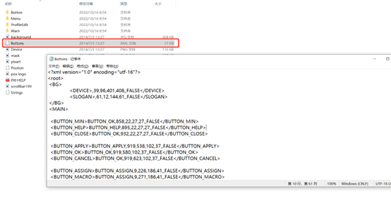 使用檔案 Buttons.xml,開啟檔案內容,會有個相對應按鈕的座標,可針對所需進行修改。