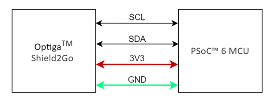 Figure 1 OPTIGA™ Shield2Go 與 PSoC™ 6 MCU間的I²C 連接