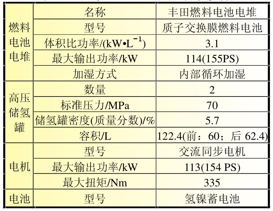表2 豐田Mirai動力系統參數