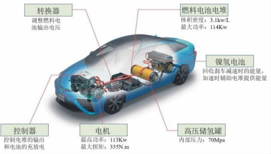 由於氫鎳蓄電池和鋰離子電池充放電迅速、能量密度大、比功率高、耐用性好、無污染、是目前燃料電池車主要採用的電池。