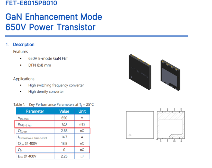 下圖為Ancora FET-E6015PB010的規格,從紅框內所標示出來的數值可以對應上述優勢