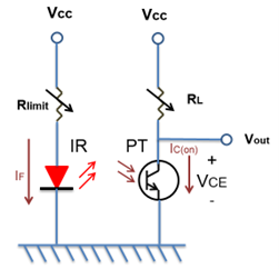 - 輻照度高時,PT 飽和,Vout 輸出為低電位(VCE(sat))