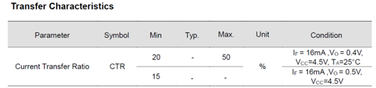 @IF=16mA、CTR%(min)=20%、Io=16mA*20%=3.2mA。