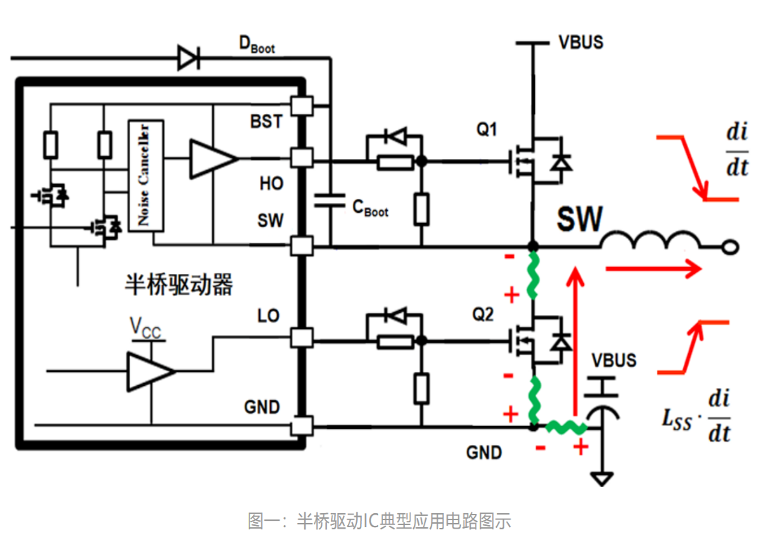 此外,開關頻率越大,SW產生的dv/dt就越大。如果選擇的驅動IC dv/dt 抗干擾能力不足,便會導致驅動IC內部邏輯錯誤,可能會使得驅動IC的HO 和 LO同時輸出高電平,使得上下管同時打開,造成短路,甚至燒壞管子。