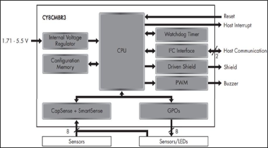 該寄存器可配置的控制器系列可支持多達16個電容式感應的輸入, 消除設計週期中費時的固件開發和調試過程. 它提供了超過100:1的信噪比, 用來確保在多雜訊的環境中其觸摸精度. 接近時喚醒功能, 在接近事件觸發時喚醒設備, 從低功率狀態到活動模式, 平常處於低功率狀態用以增加功耗效率. 當需要實現電容按鍵、滑條和接近感應解決方案時, CapSense控制器是理想的選擇, 可以帶來最小的開發週期時間.