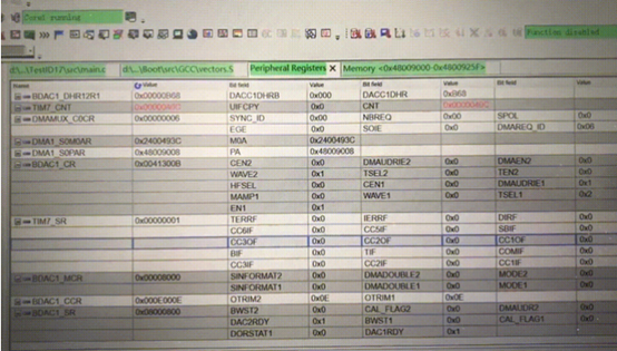 ddp->dac->CR |= DAC_CR_DMAUDRIE1;
