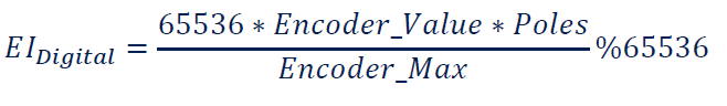 SPI_EIAngle = (int16_t)((65536*SPI_Angle_Digital*POLES)/ENCODER_SPI_MAX)%65536;