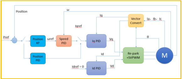 如果增加位置環最簡單和直接的方式即為將速度環換為位置環,即變為位置環+電流環的方式: