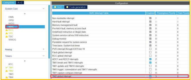 因為TIM2中斷不能妨礙電機運行,因此需要修改中斷優先級為搶占等級為3