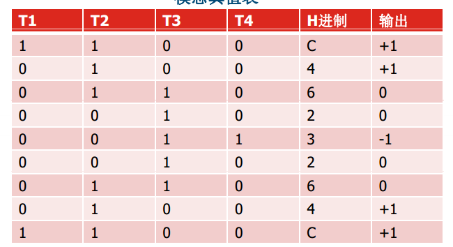 1. 將T1, T2, T3, T4的狀態分別用1和0表示,1表示開通,0表示關斷,可以有以下組合(假定電流的流向向內):