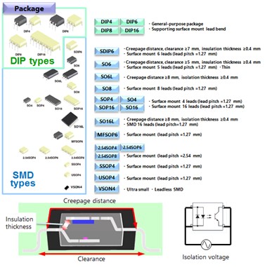 - IC輸出:該類型有光電二極體作為受光器件的產品、邏輯等輸出產品、用於IGBT和MOSFET柵極驅動的大電流輸出產品、以及隔離放大器等高功能產品。