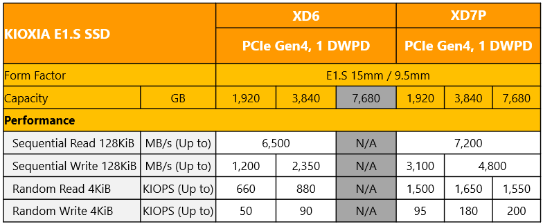 KIOXIA XD7P (PCIe Gen4) 與 XD6 (PCIe Gen4) EDSFF E1.S SSD:性能對比