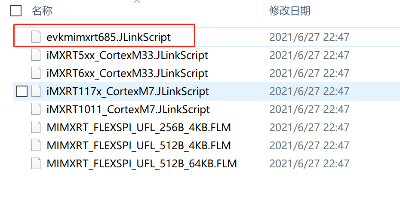 (3)將 “ievkmimxrt685.JLinkScript” 文件複製到 Segger JLink 安裝目錄下的 “iMXRT_UFL” 文件夾下: