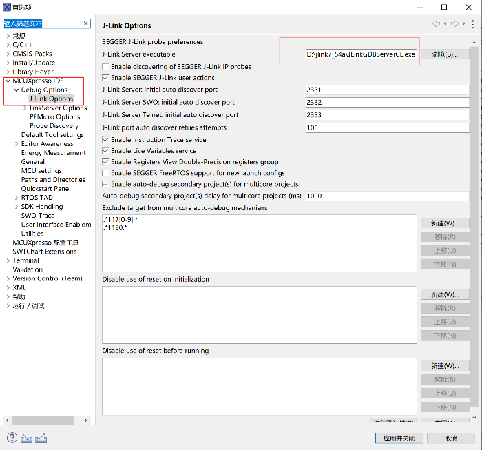 (2)在 MCUXpresso 下指定使用的 Segger Jlink 版本(如果 Segger Jlink 安裝在默認路徑,這一步可忽略):