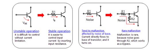 內置偏置電阻型屬於雙極電晶體的一種,通常配合電子設備中的電阻器使用。通過插入電阻實現對輸入電流更加穩定的控制,並且可以減少安裝面積。