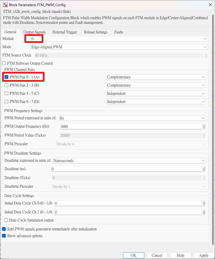 拉出以下的架構 ( MBD_S32K1xx_Config_Information, FTM_PWM_Config, Counter Limited, Data Type Conversion, Gain, Scope )