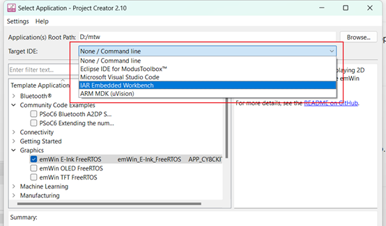 “IAR Embedded Workbench”和“ARM MDK”是常用的導出選項。你甚至可以選擇“None / Command line”,即不導出到任何的IDE,而採用更底層的編輯和編譯方式。