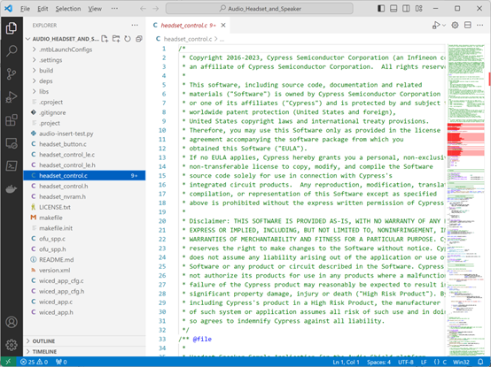如圖03,這就是Visual Studio Code直接編輯ModusToolbox™的Eclipse IDE工程的演示。可以看到,目錄結構都是Eclipse IDE工程的結構,但我們卻是在Visual Studio Code中編輯它。Visual Studio Code在代碼編輯與審閱方面有更多的優勢,可以幫助你快速編寫和更改代碼。但因為ModusToolbox™自帶的Eclipse IDE有官方的優化和整合,所以後續的編譯和燒錄的部分,回到Eclipse IDE中操作則會更合適。所以將兩者結合起來會產生1+1>2的效果。