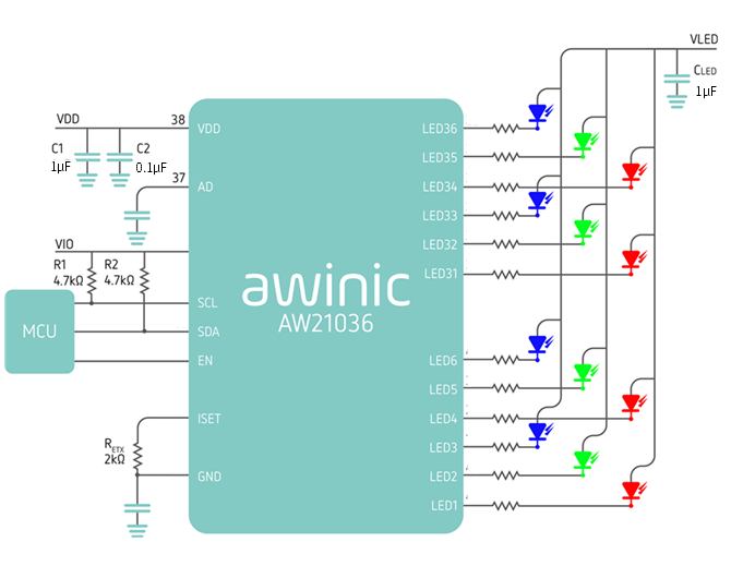 AW21036EQPY-Q1是車規級36路 RGB LED 驅動晶片,該晶片支持 1680 萬種顏色配置,同時支持16-bit PWM調光,具有超低 EMI 特性,可助力實現絢麗的車載氛圍燈效。該晶片為汽車智能座艙、信息娛樂系統、儀錶盤等提供高效的RGB LED解決方案。