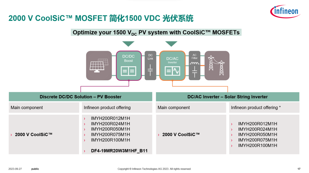 (a) 2kV SiC MOSFET系列上市,TO-247PLUS-4-HCC封裝增加了爬電距離和電氣間隙,.XT高性能焊接技術改善了熱性能。對1500VDC光伏系統帶來的改變是,可以用兩電平拓撲代替原來的三電平拓撲。