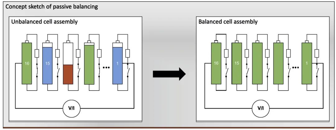 BMS 的另一項核心任務是平衡每塊電池。生產過程中,每塊電池的容量和內阻因加工工藝不同會產生偏差。因此,電池組充電或放電不均勻。為了充分使用電池的全部能量(續航能力),需要平衡每塊電池的容量和電壓。電荷平衡的基本原理有兩種:主動均衡和被動均衡。