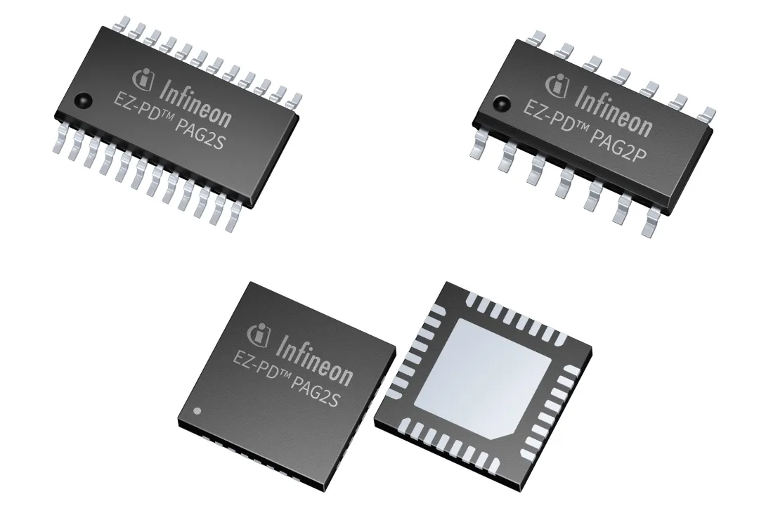 EZ-PD™ PAG2系列晶片組能夠為各種應用提供一種通用、高效的電源傳輸解決方案。該晶片組支持帶有可編程電源(PPS)的PD 3.1標準功率範圍(SPR)以及28V的擴展功率範圍(EPR),可實現快速、可靠的充電。同時,該晶片組適用於各種功率,兼容BC v1.2、AFC、蘋果充電和 QC5.0等充電協議,並支持90 VAC至265 VAC的通用AC線路輸入,提高了這款半導體器件在全球的可用性。