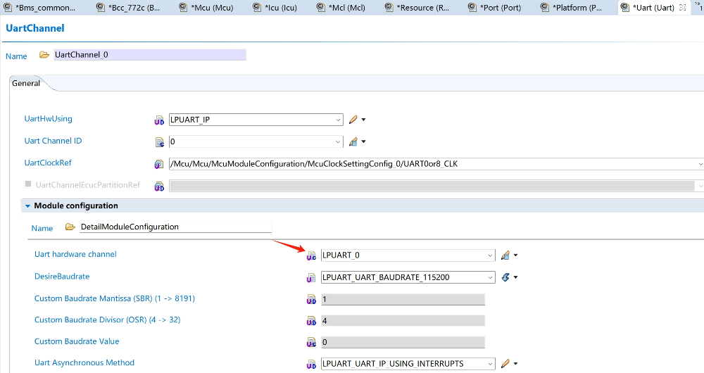 這裡需要結合 S32K3 具體的資源進行調整,舉個例子,如果我使用的是 LPUART0: