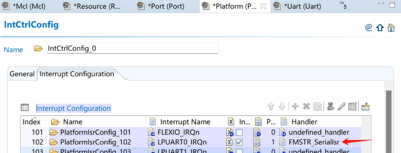 由於 S32K3 配置中斷,將 “freemaster_s32k3xx_lpuart.h”中定義的 FMSTR_SerialIsr 添加至 LPUART interrupt handler 中: